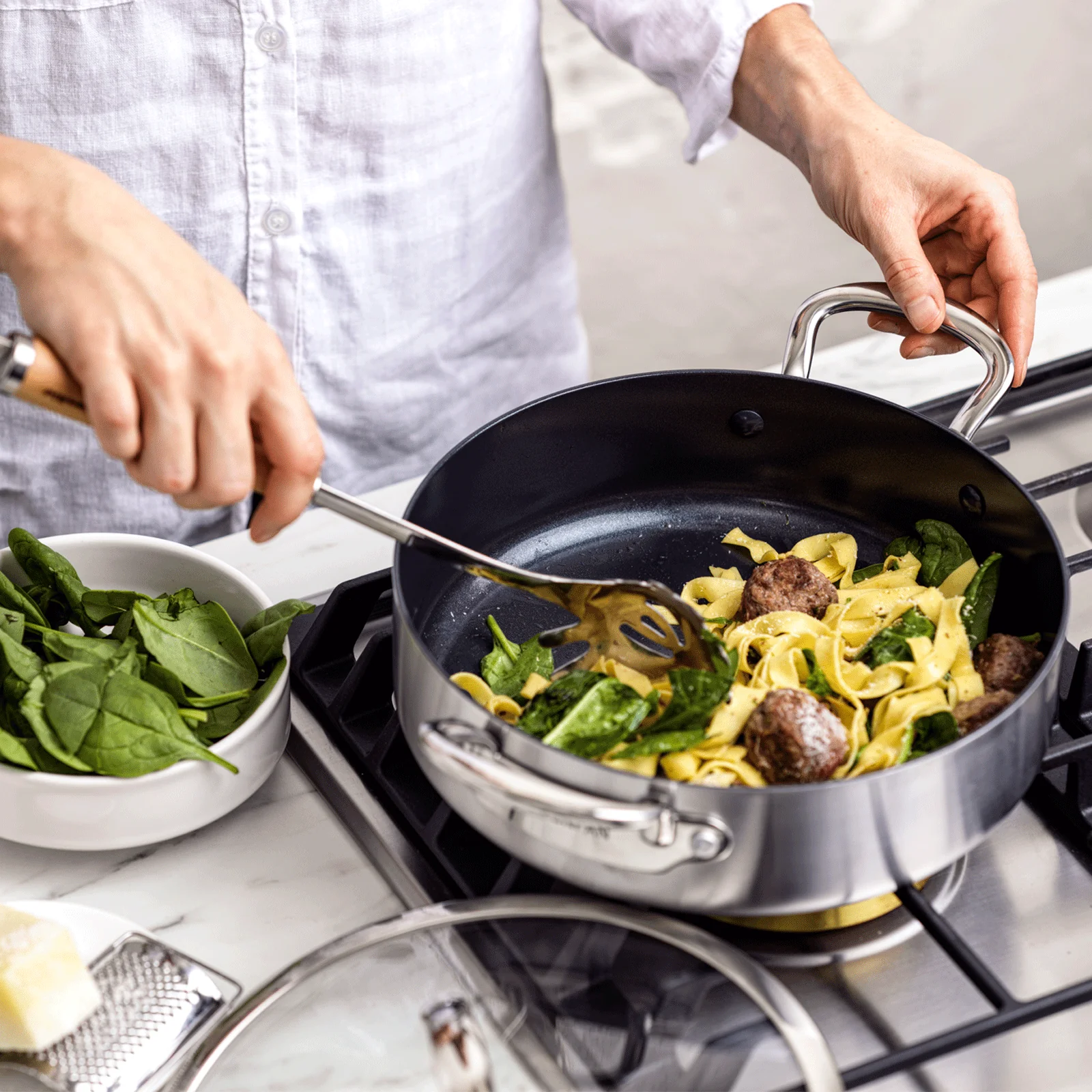 De luxueuze Barcelona Evershine collectie is knap om te zien en een plezier om mee te koken! Het ontwerp in 3-laags roestvrij staal met aluminium kern warmt snel en gelijkmatig op voor professionele resultaten. De Thermolon Infinity Pro keramische antikleeflaag is versterkt met diamant en bevat geen schadelijke stoffen (PFAS-vrij).