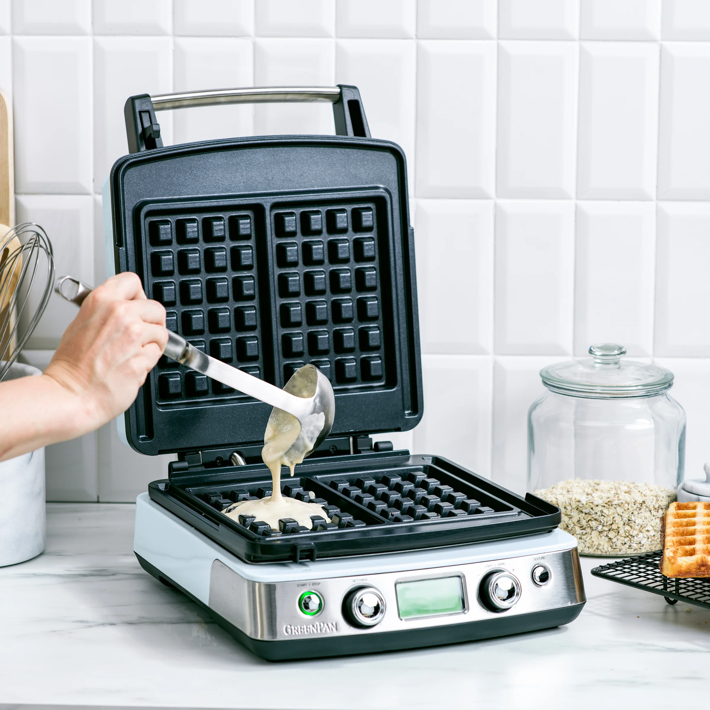 Grâce à nous, créer vos propres gaufres n’a jamais été aussi simple. Moelleuses, aériennes, fines, croustillantes... Notre gaufrier vous permet de régler la cuisson et le croustillant en un tournemain. Grâce à leur rangement intégré au gaufrier, les plaques amovibles pour gaufres classiques ou de Liège sont toujours à portée de main lorsque vous devez les changer. Et grâce à notre revêtement antiadhésif en céramique Thermolon Volt, elles se nettoient sans aucun effort.